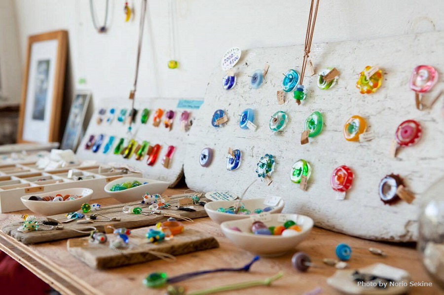 ガラス玉工房「グラスドロップ」作品の展示・販売のほか、ワークショップも開催中