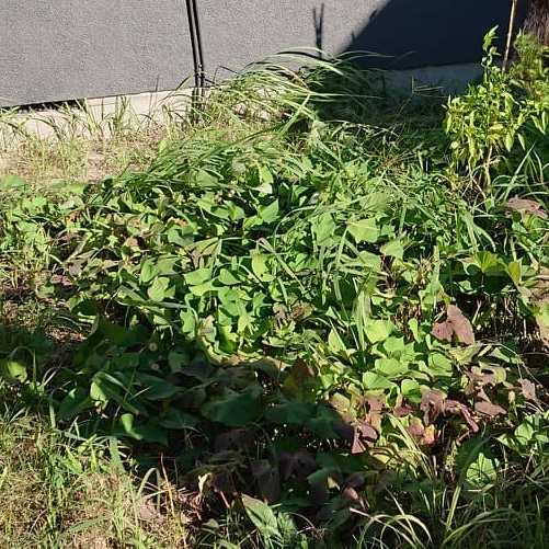 - 何かと後回しにされがちなサツマイモの植え付け。今年も出遅れて7月スタート。好天に恵まれてはいたものの、ツルの成長がイマイチ。暑すぎるのもダメなのかもしれません。辛抱強く待ち、収穫は10月。