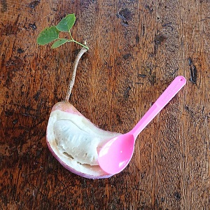 - 見た目のインパクトとは違い、味は至って淡泊。噛み切れない食感と飲み込めないツブツブは口腔の違和感でしかなく、特に子供たちには不人気。ただ、藪を分け入って実を採るまでの過程は楽しいらしく、収穫高を比べ合うまでは非常に盛り上がりました。