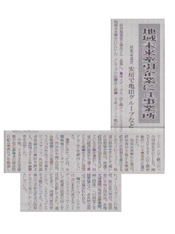 経済産業省が選出する地域未来牽引企業に内定、房日新聞に掲載されました