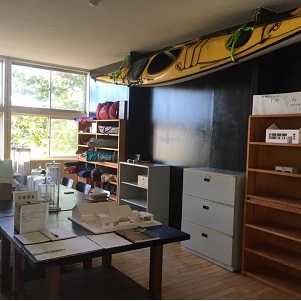 シラハマ校舎を運営する合同会社WOULDの事務所。オフィス用品のほか、カヌーやテント、キャンプ用品の保管場所として利用しています。 ウッド会社概要 -